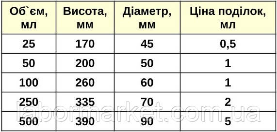 Мірний циліндр із термостійкого боросилікатного заваленого скла.