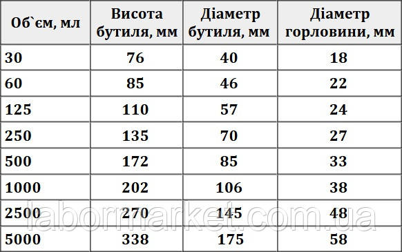 Бутиль для реактивів з шліфованою пробкою, горловина вузького діаметра, зі світлого натрієвого скла не стійкого до нагрівання. Використовуються для зберігання та транспортування вмісту, що не розкладається під впливом сонячних променів.
